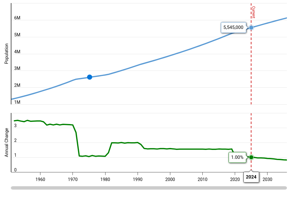 DC Metro population has grown from 2.5 million in 1976 to 5.5 million in 2024